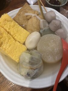 おでんの中に卵焼きがあるのもびっくりしましたが、とても美味しかったです。