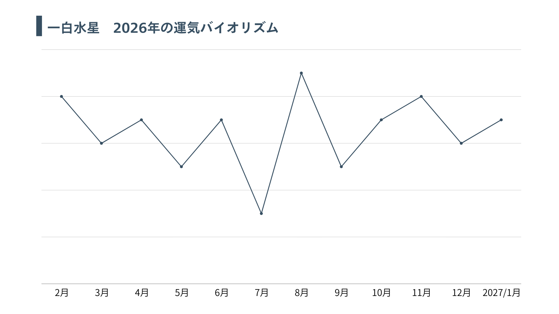 2025年の大吉から2026年の大凶、そして2027年にはまた大吉と、波のように運気が上下します。柔軟な対応力を持って、運気の流れに逆らわずに行動していきましょう。