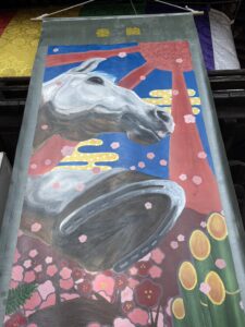 地元の高校生が氏神様に奉納している干支の絵があるのですが、今年は私の大好きな馬。