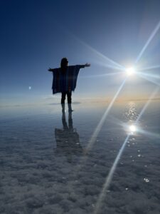 日替わりで雨期と乾季、両方の表情を見せてくれたおかげで塩の上で瞑想タイム。
